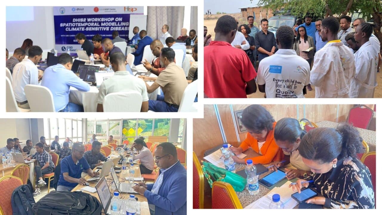 The HISP Centre at the University of Oslo (UiO) organized a five-day practical workshop on using DHIS2 for spatiotemporal modeling of climate-sensitive diseases, along with partners from the CSID Network, SOSCHI Project UK, the Data Lab for Social Good Research Group, and Wellcome Trust, and supported by HISP Rwanda and the Ministry of Health of Rwanda. The training, held in Kigali, Rwanda, brought together more than 60 participants from 15 countries across Africa, Europe, and Asia, to gain hands-on experience applying modeling approaches to real-world country use cases. More