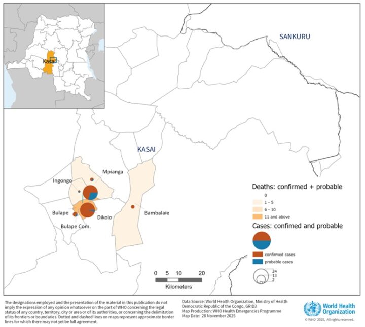O surto de Ébola de 2025 foi declarado no início de setembro nas zonas sanitárias de Bulape e Mweka, na província de Kasaï, na RDC, uma zona rural de difícil acesso perto da fronteira com Angola. Uma vez que o Ébola é uma doença contagiosa mortal – com taxas de mortalidade de casos que variam entre 25% e 90% em surtos anteriores – o acesso rápido a dados fiáveis e acionáveis foi fundamental para ajudar a investigar os casos notificados e controlar a propagação do surto.